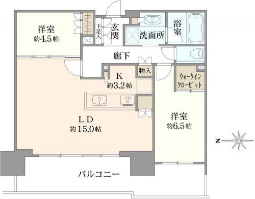間取り 2LDK 専有面積 67.44m2(20.4坪)