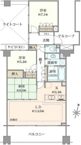 間取り 3LDK 専有面積 84.86m2(25.6坪) 壁芯