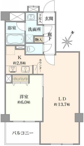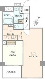 間取り 1LDK 専有面積 50.24m2(15.1坪) 壁芯
