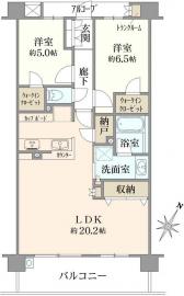 間取り 2LDK 専有面積 72.89m2(22.0坪) 壁芯