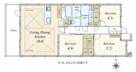 間取り 3LDK 専有面積 77.91m2(23.5坪) 壁芯