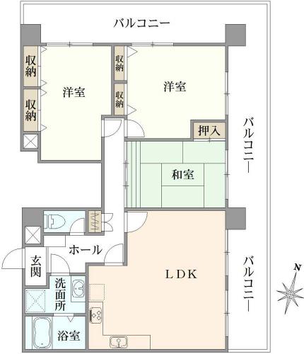 間取り 3LDK 専有面積 80.80m2(24.4坪) 壁芯