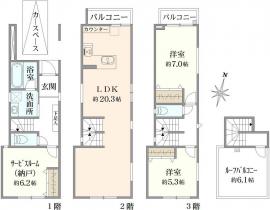 土地面積 56.68m2(17.1坪) 建物延面積 93.13m2