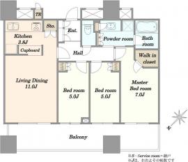 間取り 3LDK 専有面積 71.82m2(21.7坪)
