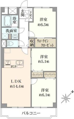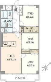 間取り 3LDK 専有面積 70.56m2(21.3坪) 壁芯