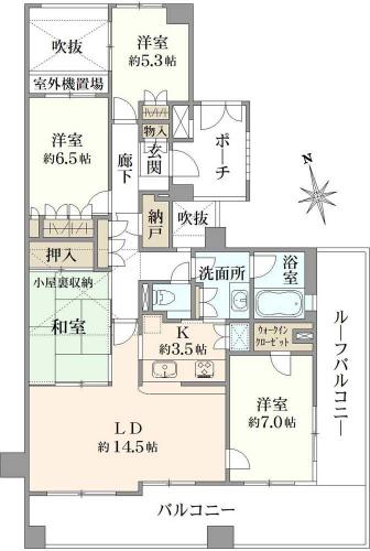 バルコニー 17.30m2 主要採光方向