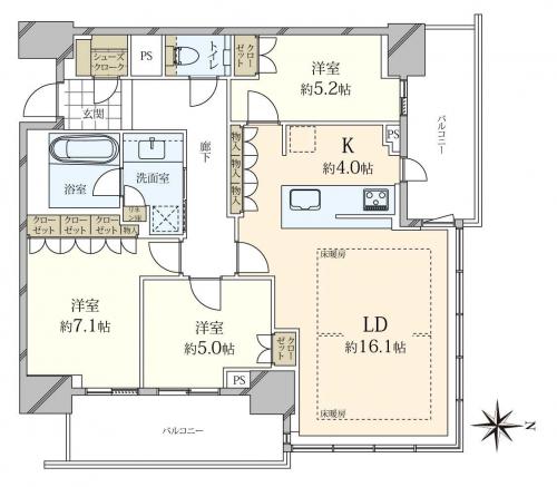 間取り 3LDK 専有面積 87.49m2(26.4坪) 壁芯