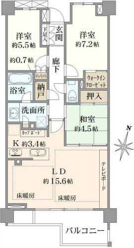 間取り 3LDK 専有面積 80.87m2(24.4坪) 壁芯