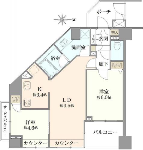 間取り 2LDK 専有面積 53.78m2(16.2坪) 壁芯
