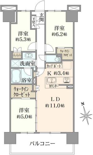 間取り 3LDK 専有面積 70.20m2(21.2坪) 壁芯