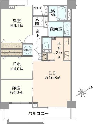 間取り 3LDK 専有面積 62.94m2(19.0坪) 壁芯