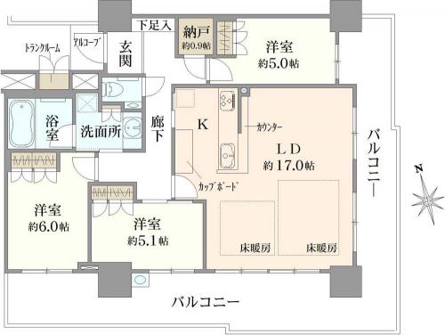 間取り 3LDK 専有面積 85.46m2(25.8坪) 壁芯