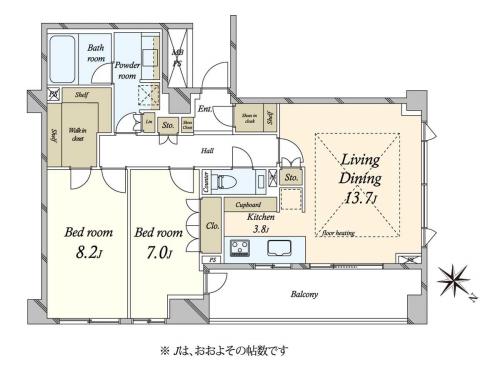 間取り 2LDK 専有面積 83.34m2(25.2坪) 壁芯