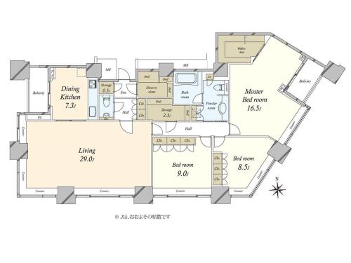 間取り 3LDK 専有面積 157.65m2(47.6坪) 壁芯
