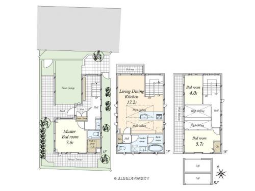 土地面積 100.57m2(30.4坪) 登記簿 別途私道負担18.75m2 建物延面積 113.93m2