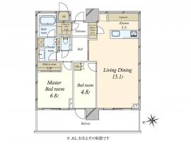 間取り 2LDK 専有面積 73.17m2(22.1坪) 壁芯