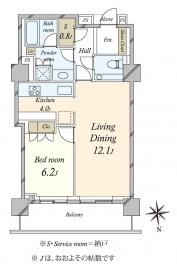 間取り 1LDK 専有面積 56.69m2(17.1坪) 壁芯