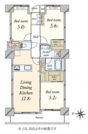 間取り 3LDK 専有面積 68.08m2(20.5坪) 壁芯
