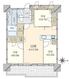 間取り 3LDK 専有面積 74.56m2(22.5坪)