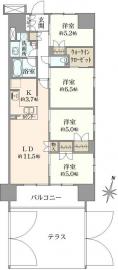 間取り 4LDK 専有面積 83.84m2(25.3坪) 壁芯