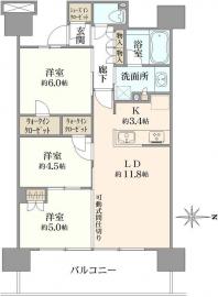 間取り 3LDK 専有面積 68.95m2(20.8坪) 壁芯