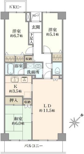 バルコニー 10.75m2 主要採光方向 南東