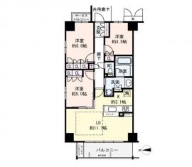 間取り 3LDK 専有面積 67.10m2(20.2坪) 壁芯