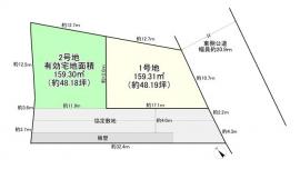 備考 建築条件なし売土地 ※土地面積のうち、59.24?は協定敷地部分です。 ・1号地 土地面積:159.31?(実測) 8980万円建築条件無