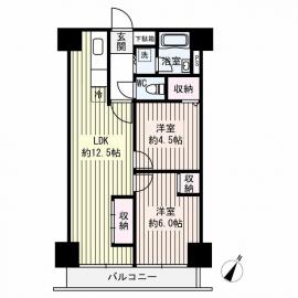 間取り 2LDK 専有面積 45.04m2(13.6坪) 壁芯
