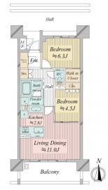 間取り 2LDK 専有面積 60.03m2(18.1坪) 壁芯