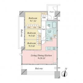 間取り 3LDK 専有面積 85.08m2(25.7坪) 壁芯