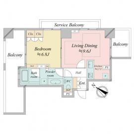 間取り 1LDK 専有面積 45.87m2(13.8坪) 壁芯