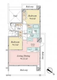 間取り 2LDK 専有面積 63.32m2(19.1坪) 壁芯