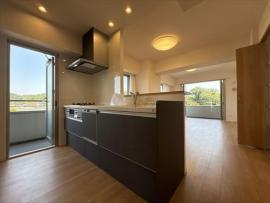 キッチンからリビングを見渡しながらお料理ができます。
