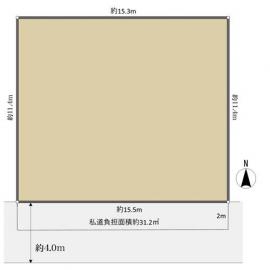 土地面積 176.32m2(53.3坪) 実測 別途私道負担約31.2m2