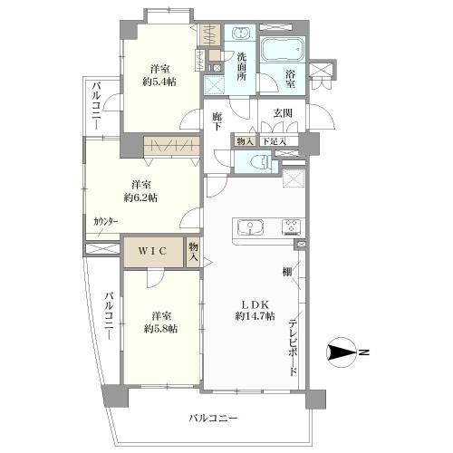 3LDK+WIC(WIC=ウォークインクローゼット)