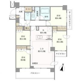 ■内法81.34㎡(24.60坪)の4LDKの間取りかつ約10.26㎡のバルコニー付き住戸!