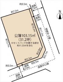 土地面積 103.15m2(31.2坪) 登記簿 (セットバック要約12.0m2