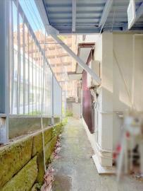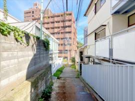 本物件南側に内積みのブロック塀があり隣地との高低差があります。建物を建築する際はブロック塀から2m離れたうえ、高基礎で建築する必要があります。