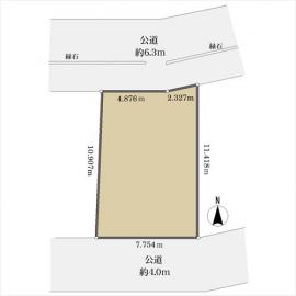 二方 北約6.3m公道、間口:7.2m 南約4.0m公道、間口:7.7m |