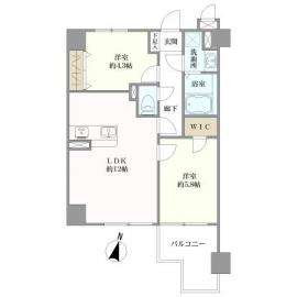 間取り 2LDK 専有面積 51.69m2(15.6坪) 壁芯