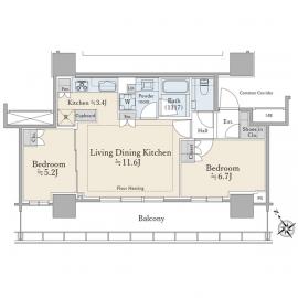 間取り 2LDK 専有面積 58.91m2(17.8坪) 壁芯