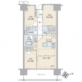 間取り 3LDK 専有面積 72.17m2(21.8坪) 壁芯