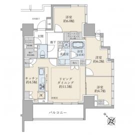 間取り 3LDK 専有面積 77.78m2(23.5坪) 壁芯