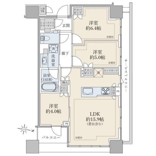 間取り 3LDK 専有面積 68.55m2(20.7坪) 壁芯