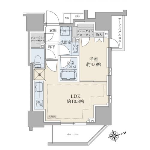 間取り 1LDK 専有面積 38.52m2(11.6坪) 壁芯