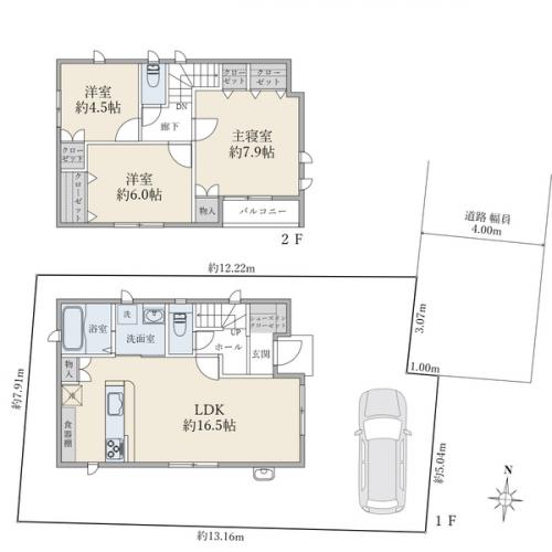土地面積 102.42m2(30.9坪) 実測 別途私道負担101.00m2 建物延面積 84.67m2