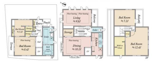 土地面積 99.38m2(30.0坪) 実測 建物延面積 158.22m2