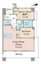 間取り 1SLDK 専有面積 70.62m2(21.3坪) 壁芯