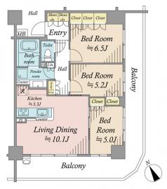 間取り 3LDK 専有面積 70.40m2(21.2坪) 壁芯